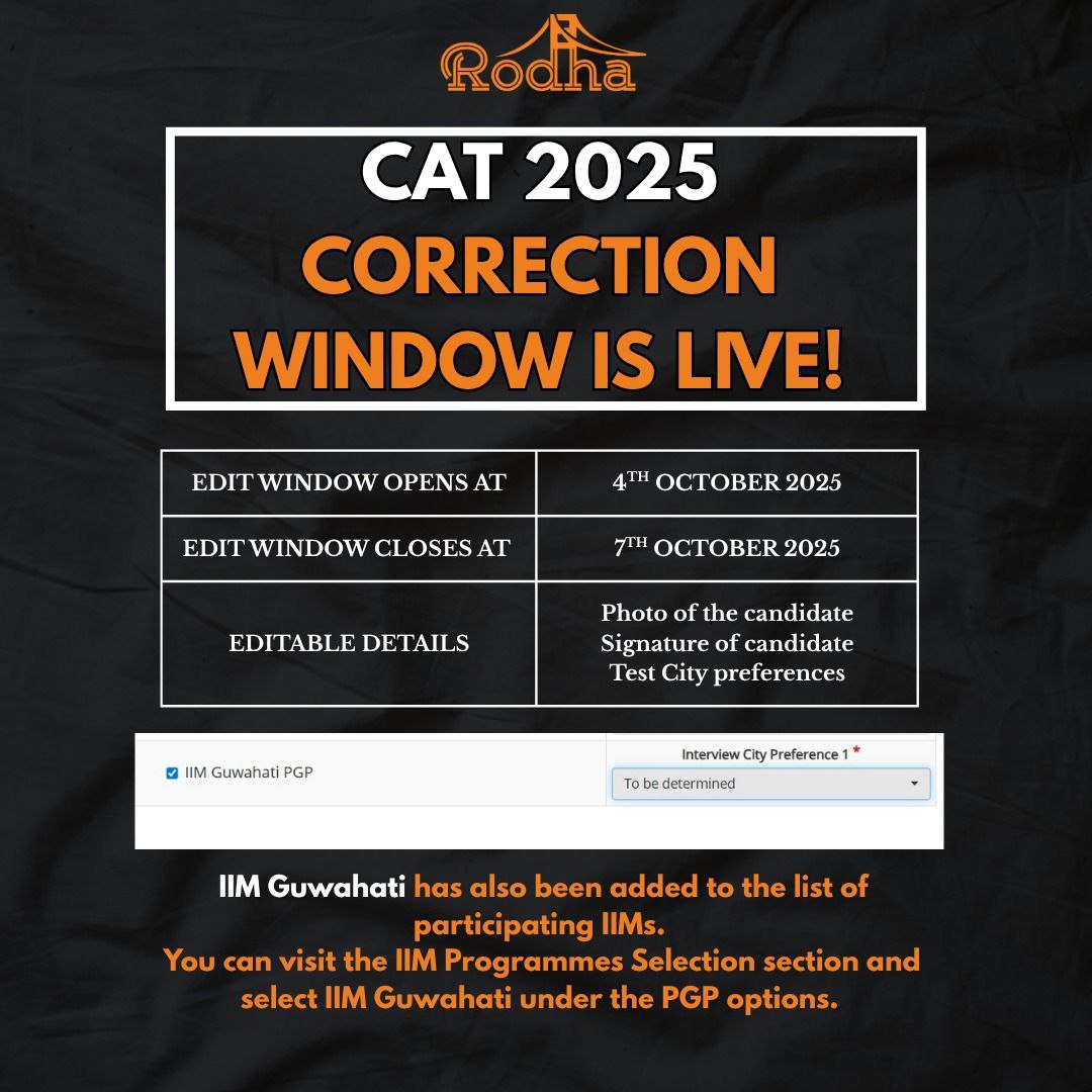 The most significant change in the CAT 2025 correction window is the addition of the IIM Guwahati program option.