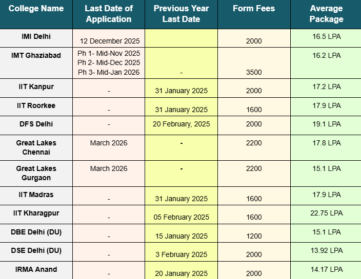 These are India’s premier non-IIM MBA colleges. Their placements and ROI often rival or even surpass those of older IIMs. Each of these requires a separate application form in addition to CAT and GMAT.