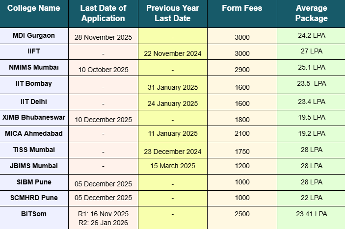 Some MBA colleges require applications even before CAT takes place; NMIMS (through NMAT) and ISB are classic examples. This is why tracking every MBA application deadline is critical, not just CAT.